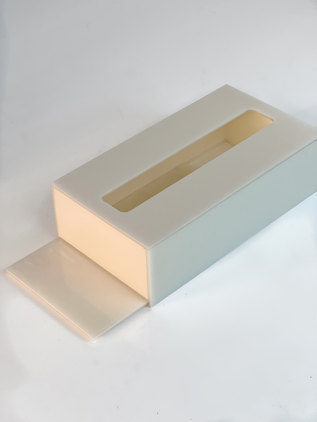 Material: Acrílico perolado com leve brilho e tom sutilmente amarelado (tom pode variar com a iluminação)