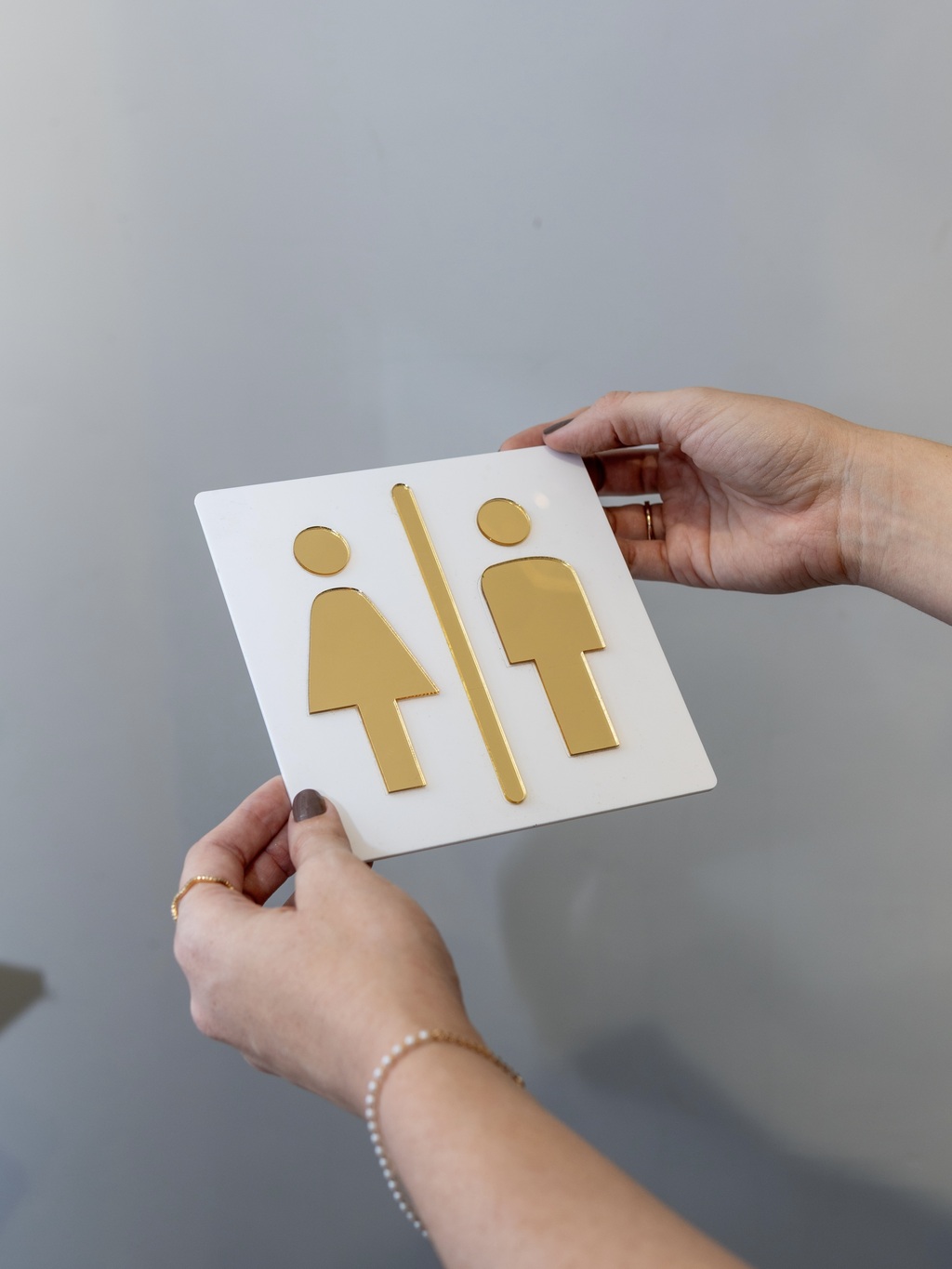 Mantenha seus espaços organizados e sinalizados com nossa Placa de Sinalização de Banheiro. Com design moderno e acabamento impecável em acrílico, essa placa é ideal para indicar o caminho para o banheiro com estilo e clareza. Mantenha seus convidados informados e faça uma declaração de bom gosto com essa sinalização